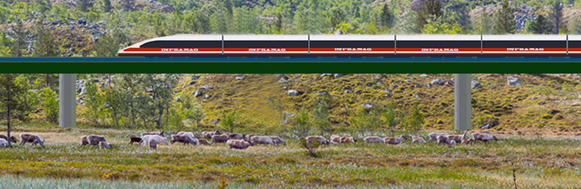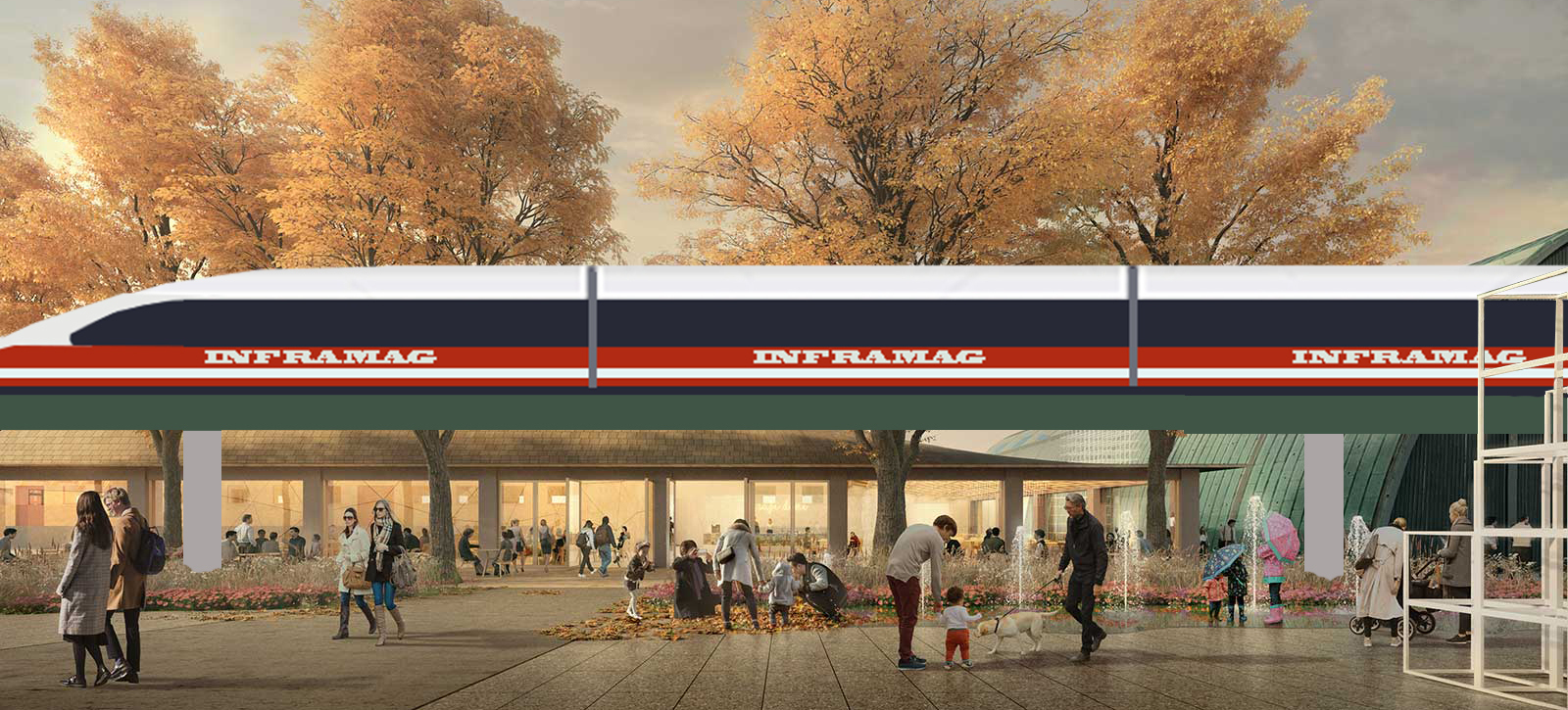 Vårt mest revolutionerande transportsätt för persontransporter. Man reser snabbt 400 - 500 km/h och det går tyst. Kan inte spåra ur och man reser på ett magnetfält så friktionen är minimal. Ett framtida sätt att transportera personer och lättare internet gods. Man reser dessutom mellan centrala stationer som liggande en våning upp. Inga reser mellan transportcentra och stadens centrum. Tåget går direkt till centrum. Hela snabba infrastrukturen ligger en våning upp och den delar inte av naturen utan du kan fritt utnyttja den vare sig du är människa eller djur.